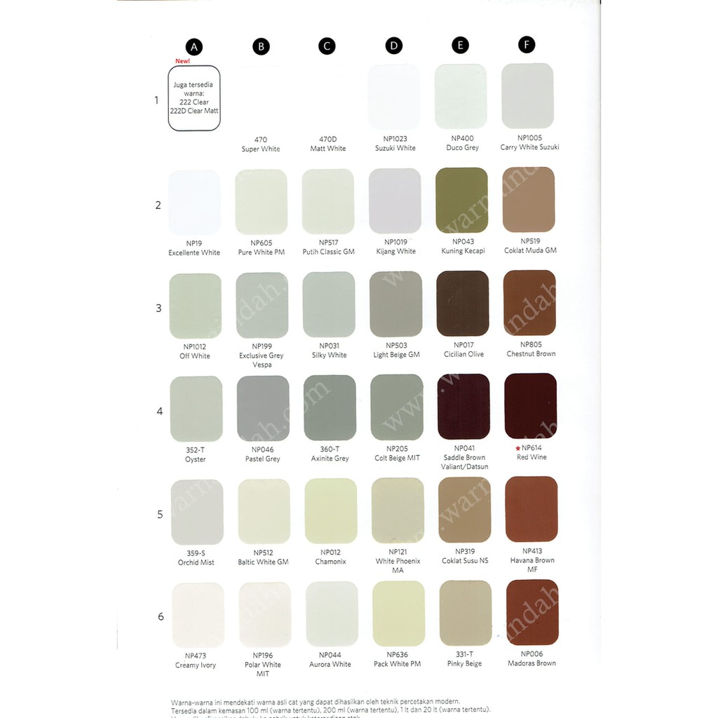 Menghasilkan daya kilap tinggi warna tidak menguning dan tahan gores. Harga Katalog Warna Vinilex by Nippon Paint. Nippon Paint Nippe 2000 Warna Indah Sumber.